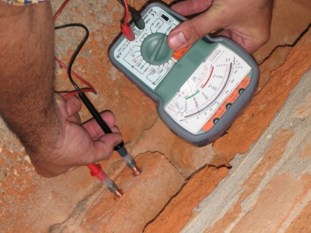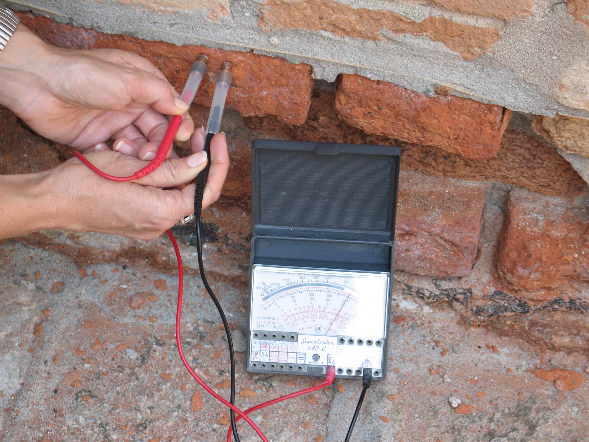 10 settembre 2005 – Misurazione della resistenza elettrica nei mattoni sottostanti il secondo taglio – 6.200 W, corrispondente a circa 114,00 kg d’acqua per tonn. di materiale inglobante