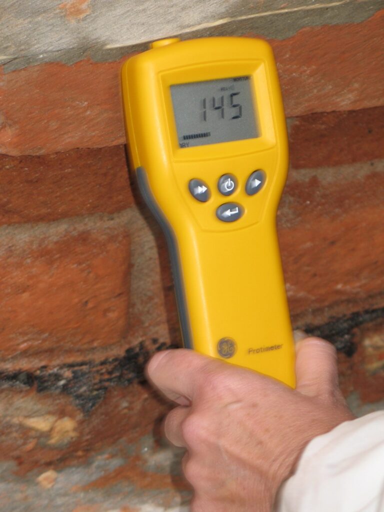 15 luglio 2007 – In una giornata piovosa, sui mattoni sottostanti il secondo taglio, il PROTIMETER segna 145, asciutto