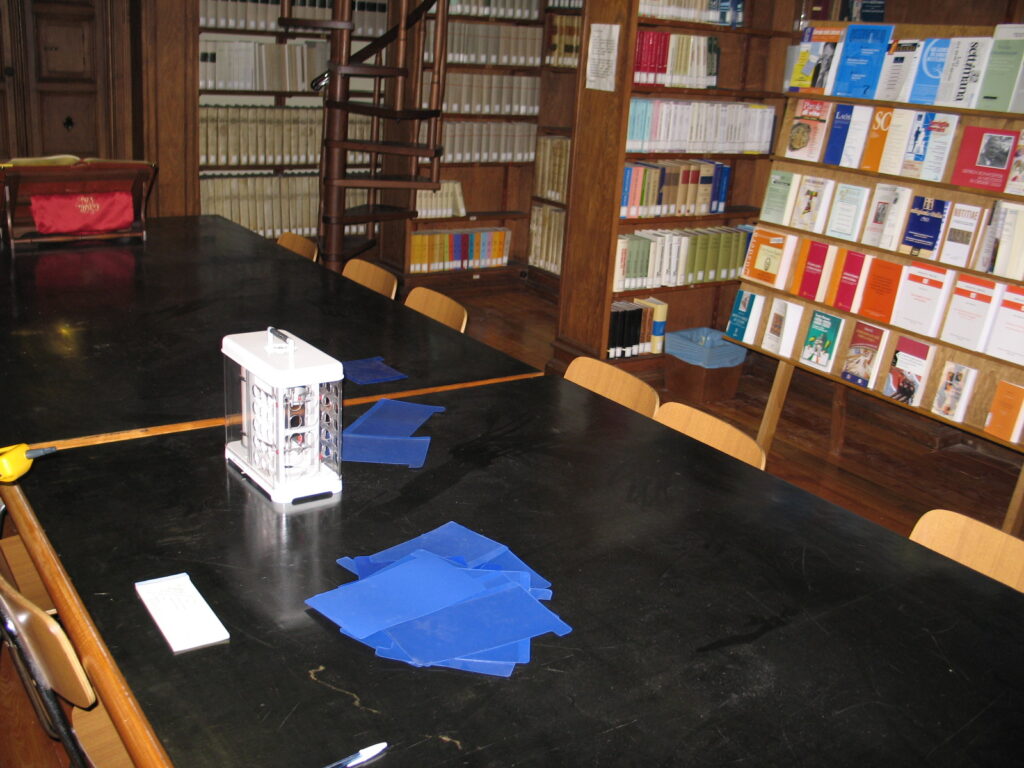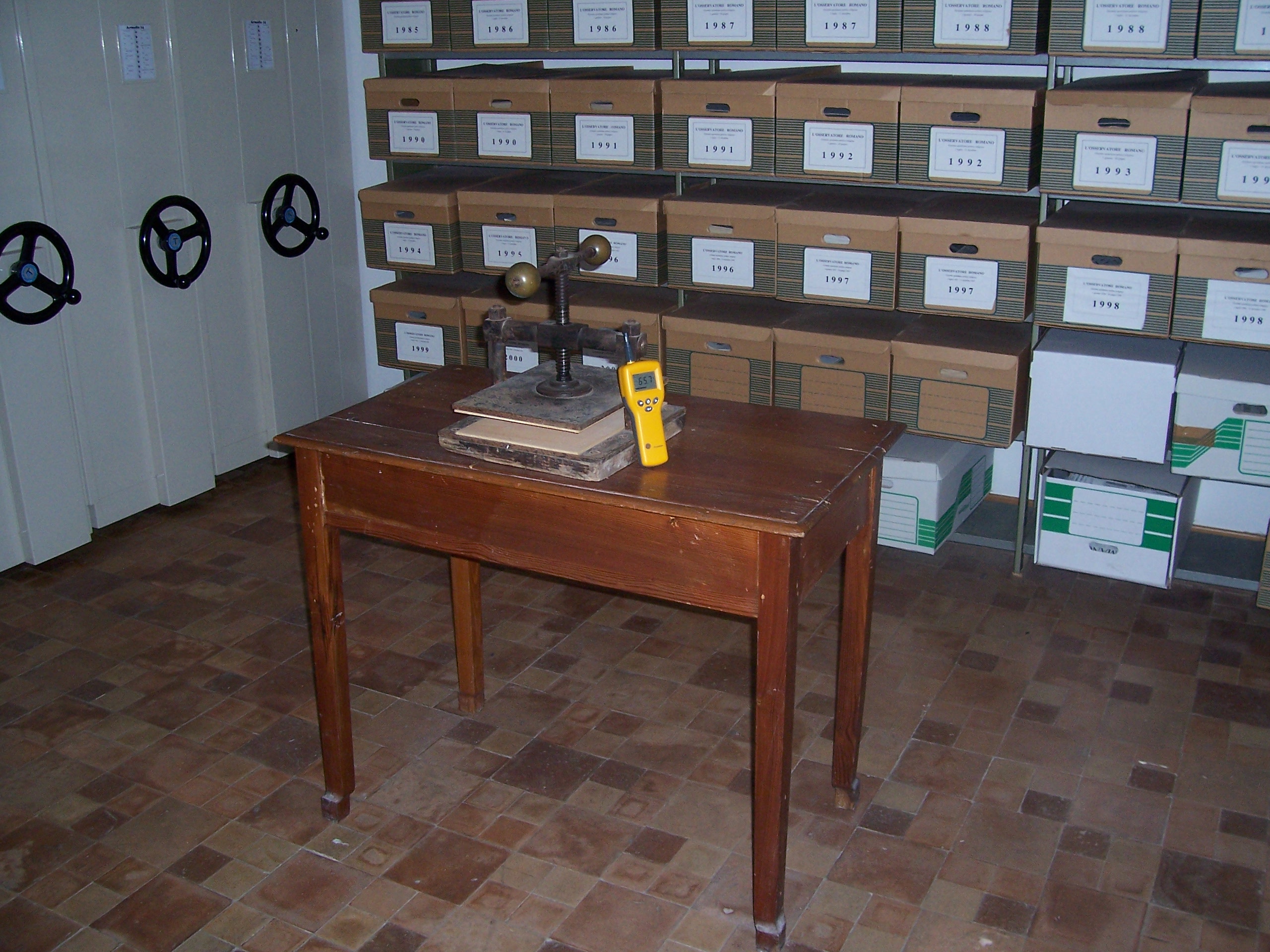16 settembre 2006 – L’igrometro della biblioteca al piano terra, a sinistra nella foto, conferma un’ umidità relativa del 65%