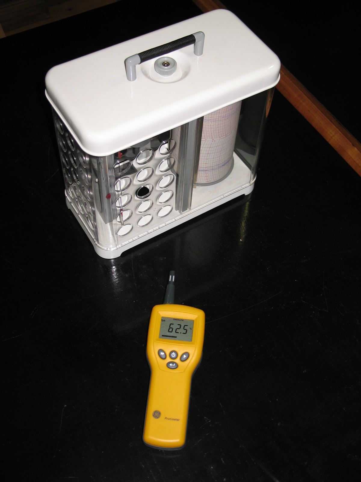 16 settembre 2006 – Misurazione al piano terra della biblioteca : il PROTIMETER indica un’ umidità relativa del 65,6%