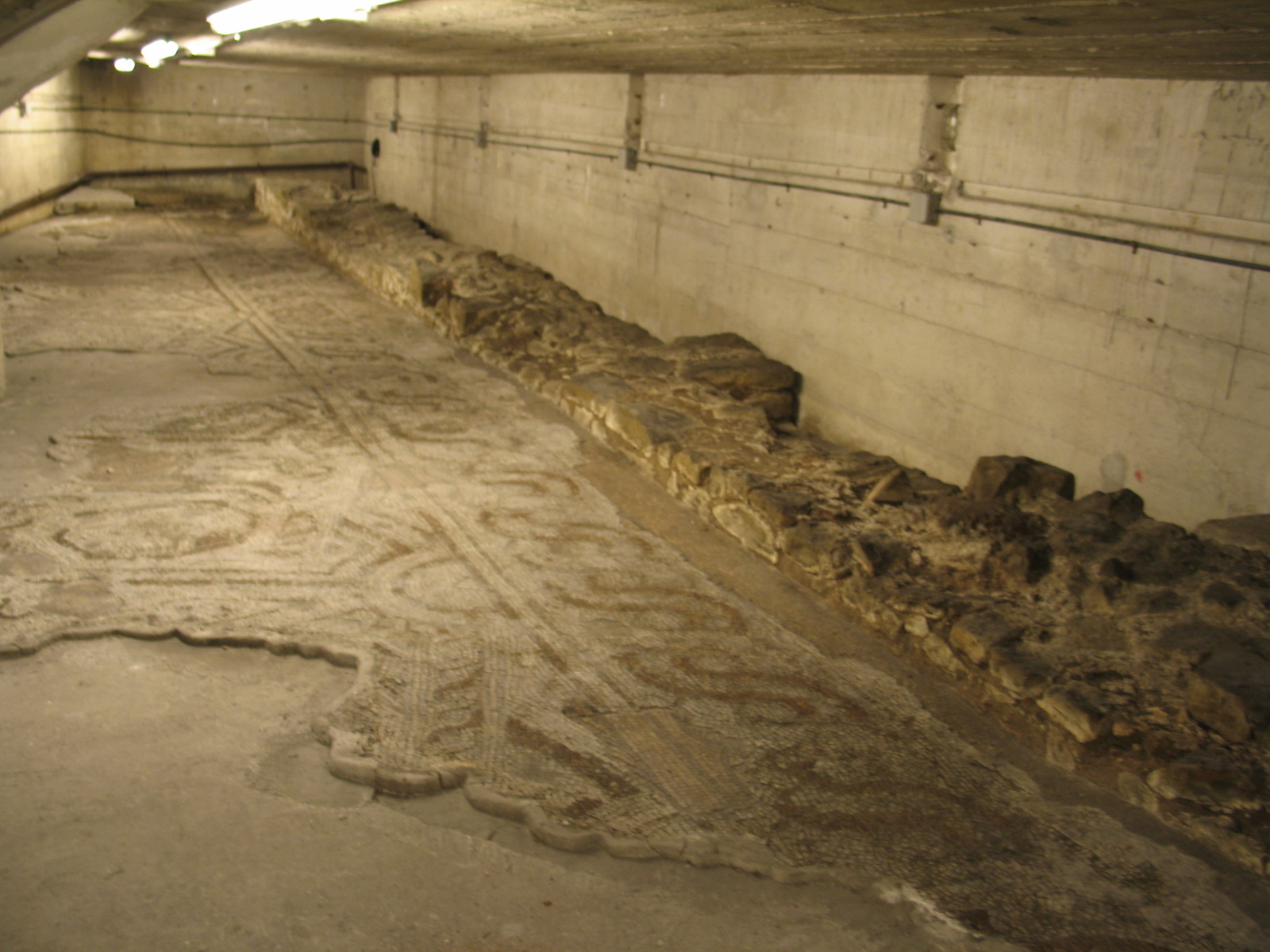 La strada soprastante, ricostruita dopo aver riportato alla luce la parte dei ruderi che non era stata inglobata nelle fondamenta delle case poste ai lati della via, poggia su un solaio in calcestruzzo, che è sorretto da un certo numero di pilastri in cemento armato. Il vano risultante funge, così, da contenitore dei reperti, nei quali si è trovata inglobata una notevole quantità d’acqua, sia perché l ambiente è intersecato da piccole falde d’acqua, sia perché è quasi privo di circolazione d’aria, per cui esso è sempre stato caratterizzato da un’umidità relativa particolarmente elevata.