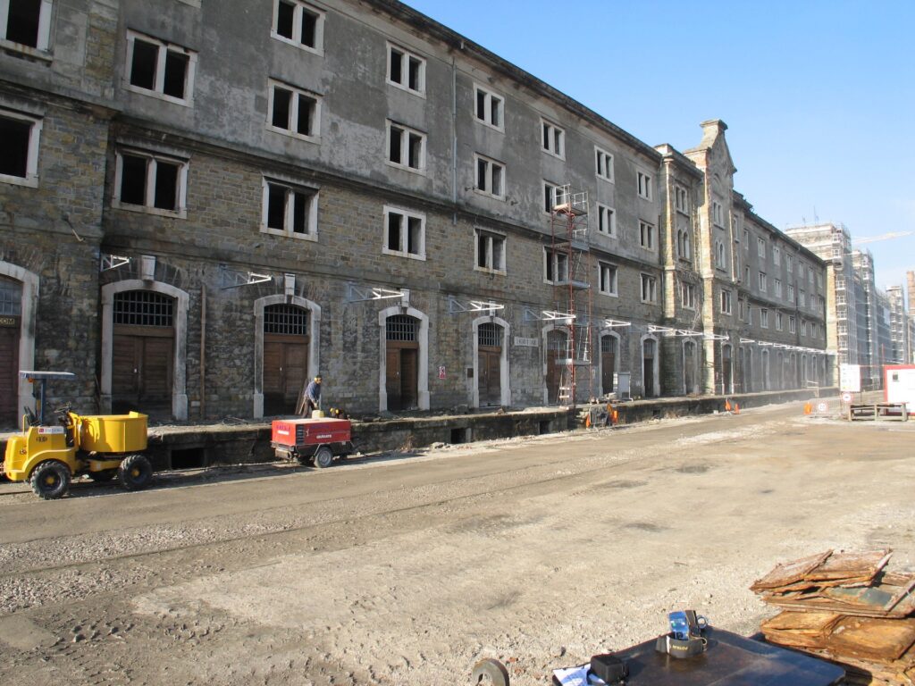 Misura circa 250 metri di fronte per 35 di lato, con circa 9.000 mq di superficie per piano. Ha subito, nel tempo, notevoli danni da intemperie e da umidità risalente di natura elettrolitica e, pertanto, nel 2006, mentre era in fase di ristrutturazione, è stata chiesta alla società Maltauro S.p.A. che eseguiva i lavori, l’autorizzazione a svolgervi una sperimentazione consistente nell’attivazione temporanea del B.E.F.E.C.® System, per verificarne l’attitudine all’eliminazione dell’acqua inglobata nella sua struttura e, dei risultati ottenuti, la stessa Società ci ha fornito l’attestazione allegata.